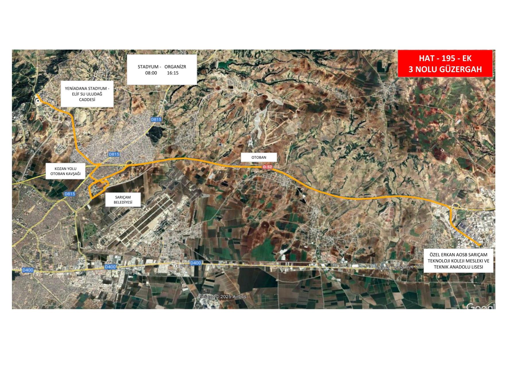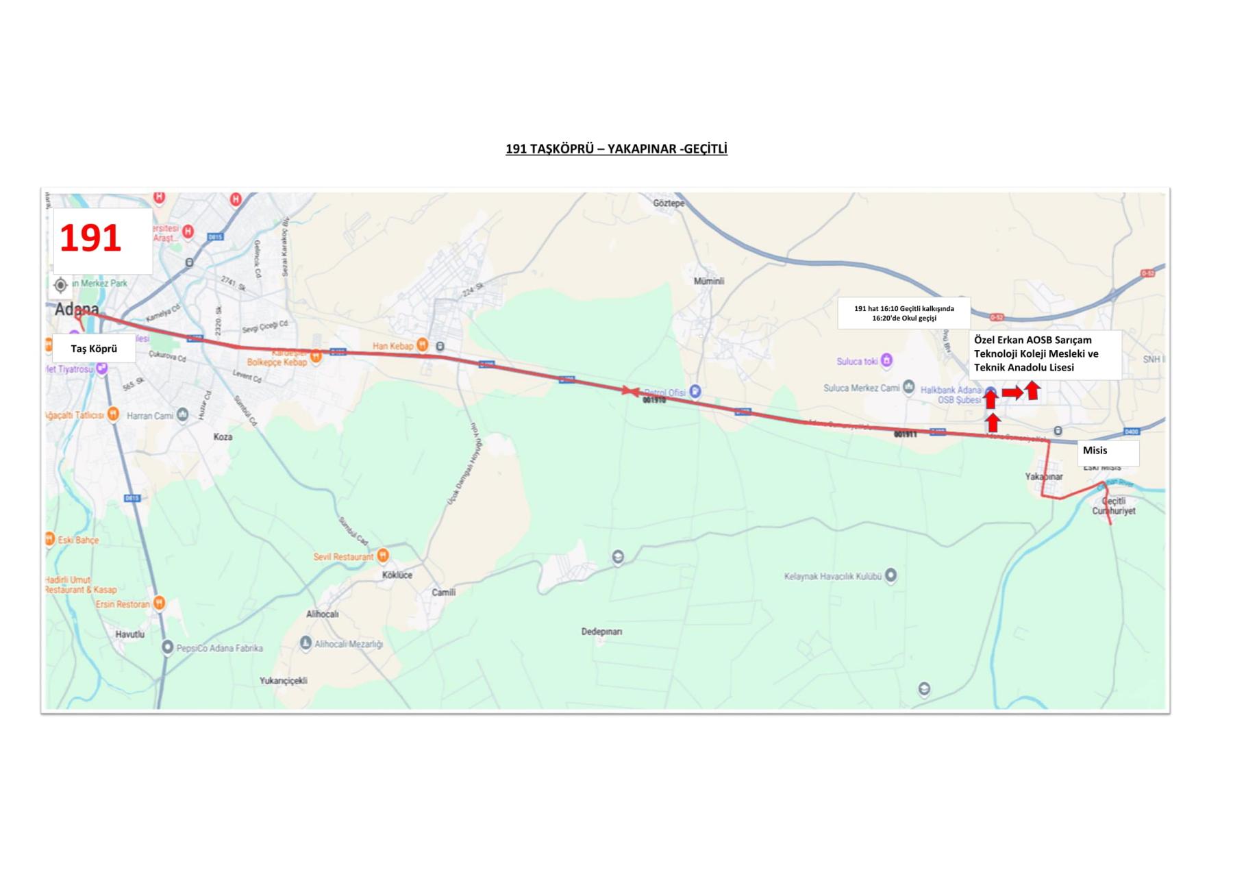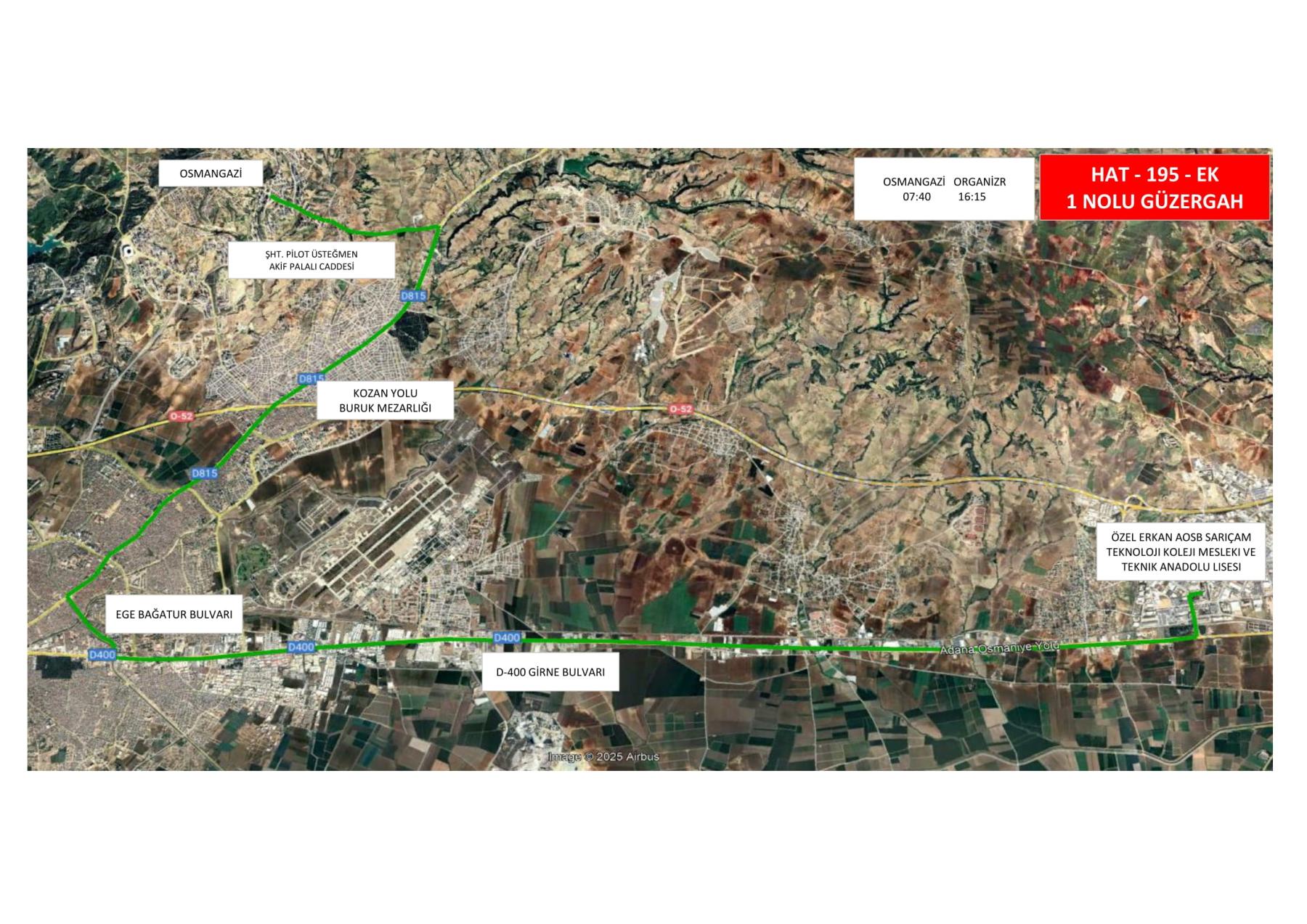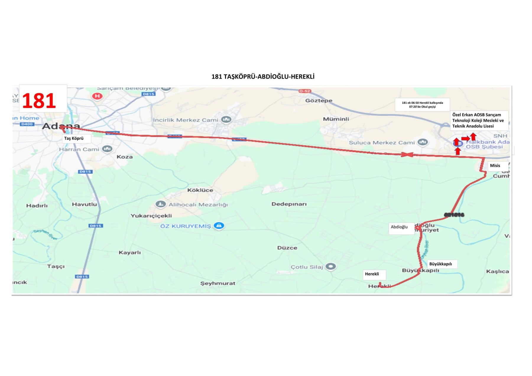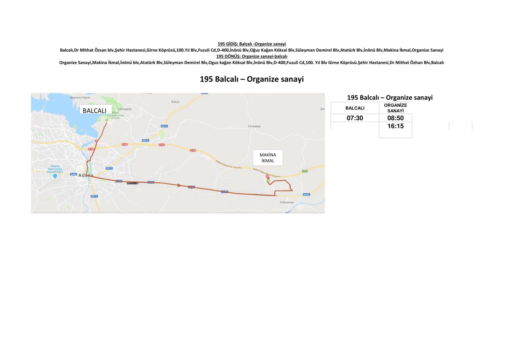 195 Numaralı Belediye Otobüsünün güzergah ve saat bilgileri aşağıda yer almaktadır.